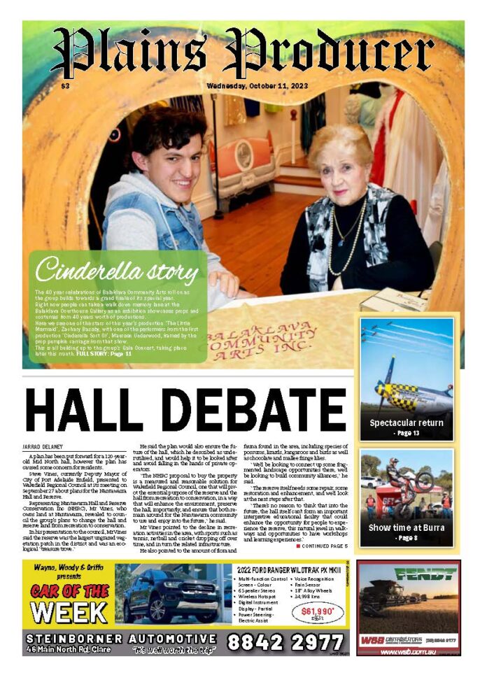 Plains Producer – 11th October 2023 Subscribe or Login to see the rest of the content. Username Password * Remember Me Forgot Password News Lot of heart for Hamley Op Shop 26/11/2025 Hamley Bridge's local op shop is taking a major step forward in supporting the local community, as it prepares to offer grants to help... Watervale remains unbeaten 26/11/2025 Watervale has continued their unbeaten run in what was a largely one-sided round of Mid North tennis played at the weekend. The closest result of... Auburn secures promise 26/11/2025 Community concerns have been laid to rest after assurance was confirmed that the disbursement of funds from the sale of the former Auburn RSL...
