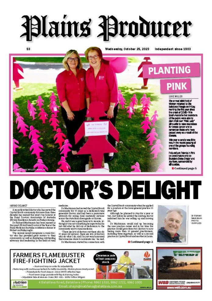 Plains Producer – 25th October 2023 Subscribe or Login to see the rest of the content. Username Password * Remember Me Forgot Password News Bowmans battle to win by one 25/11/2025 Round six served up a dose of balmy weather, big crowds and even bigger burgers at Ralli Park, with locals getting behind fundraising efforts... Bolt By to glory in cup race 25/11/2025 Murray Bridge-trained gelding Bolt By lived up to his name, charging home in the straight to win the 2025 Jim Barry Clare Valley Cup... Burra chosen to host major 2026 heritage event 25/11/2025 Burra has been chosen to host the next 2026 event for Australia International Council on Monuments and Sites (AICOMOS), taking it one step closer...