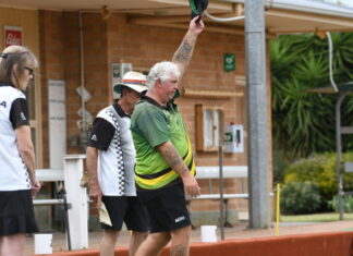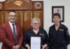 Representatives from councils alongside community and education stakeholders converged at Paxton Square, Burra, for the launch of Uni Hub's Goyder outreach service. From left are Heidi Hodge, Toni Gannon, Lynn Wallace, Morgan Randall, Anita Kuss, Marie O'Dea, David Stevenson, Katina Athanasos, Rhys Millington. Photo: James Swanborough 416580_01