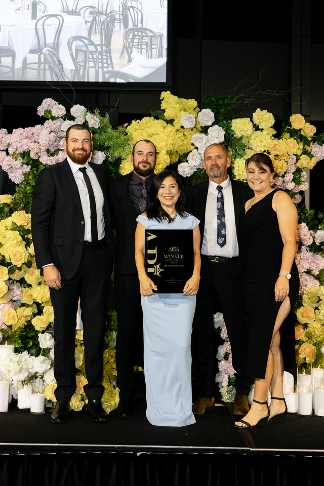 Mid North Party Hire staff member's Jack McRae and Shane Clarke and owners Richard and Kymette Schultz with ABIA Managing Director Natasha O'Meara (middle). (Supplied)