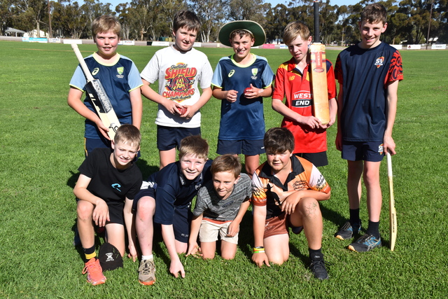 The Jamestown junior cricketers set to have first crack on the new surface. (Back): Sid Clark, Vinnie Fielding, Tom Pammenter, Fletcher Williams, Luke Heness; (front): Tom Cousins, Hamish Simpson, Gus Clark, and Arley Hagger. (Harry Mead: 519255)