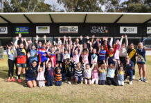 Members of the SANFLW Eagles side and the SANFL visited Clare for a girls football clinic attracting more than 60 attendees.